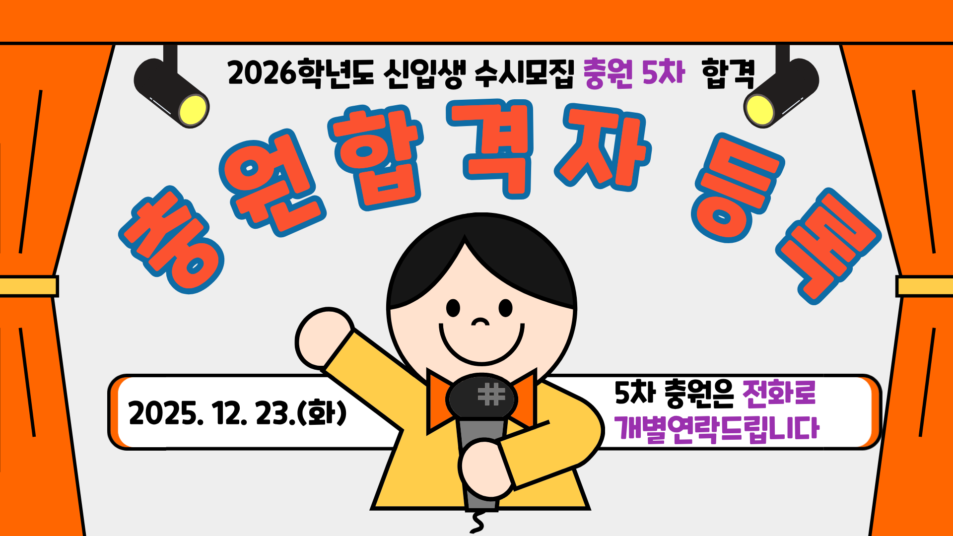 2026학년도 신입생 수시모집 충원5차 합격자 발표(2025.12.23.(화)13:00~14:00)