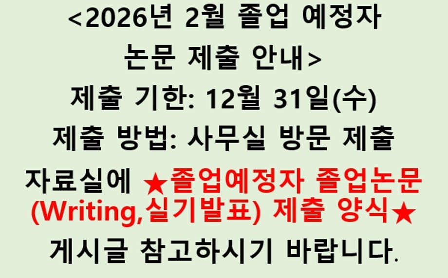 The Department of English Literature at Hanbat University's College of Humanities trains English professionals required by the international society. By equipping practical and major-intensive courses in the curriculum, students are provided with practical solution skills and extensive knowledge of related disciplines. To provide hands-on language and literature education, we are fully equipped with advanced classrooms and audiovisual education facilities. After graduation, there is a wide range of employment fields, so you can work in various fields related to language and literature, such as academic and research institutes, corporate management positions, media, finance, trade, paragraphs, and cultural property-related institutions.