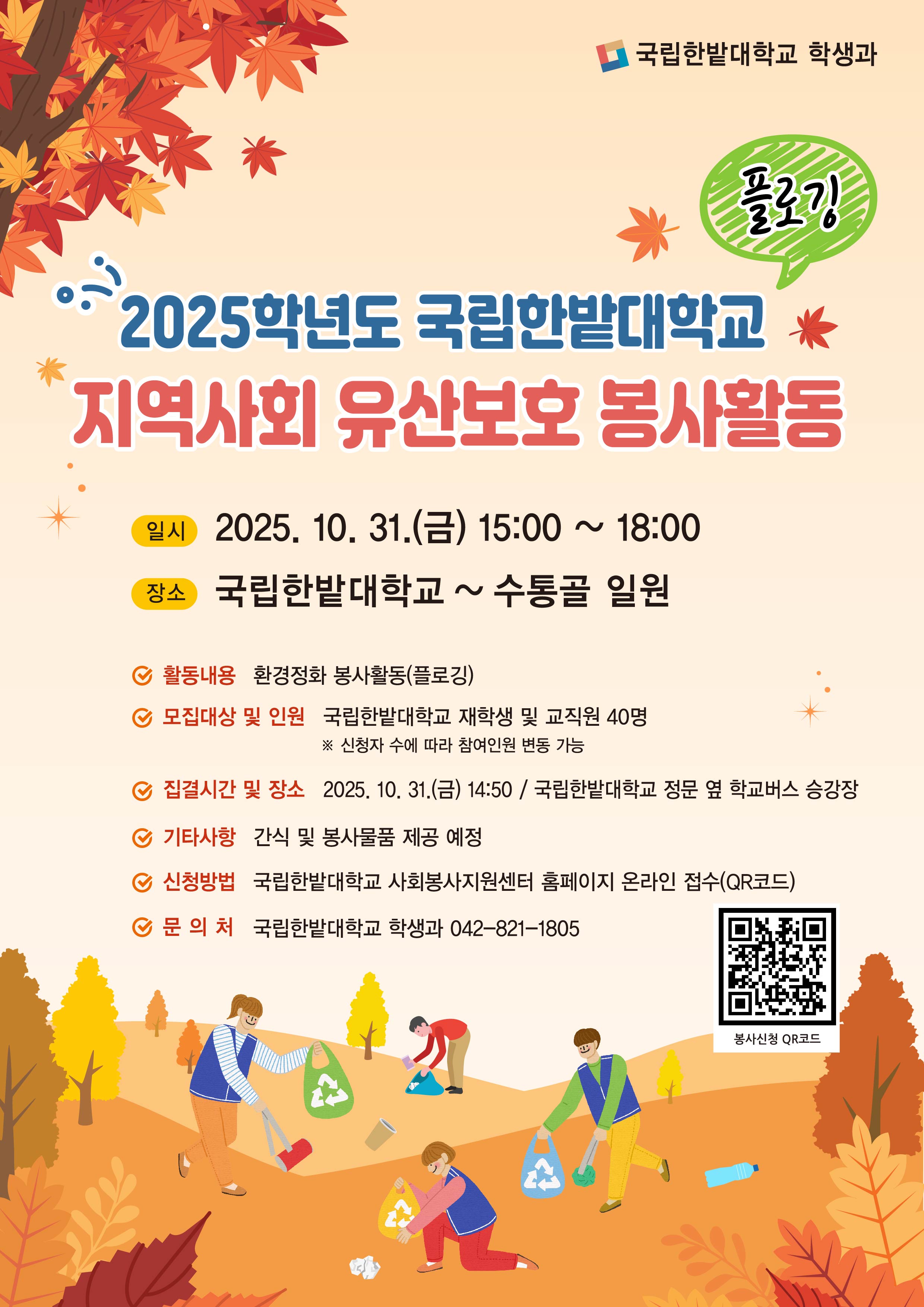 2025학년도 국립한밭대학교 지역사회 유산보호 봉사활동을