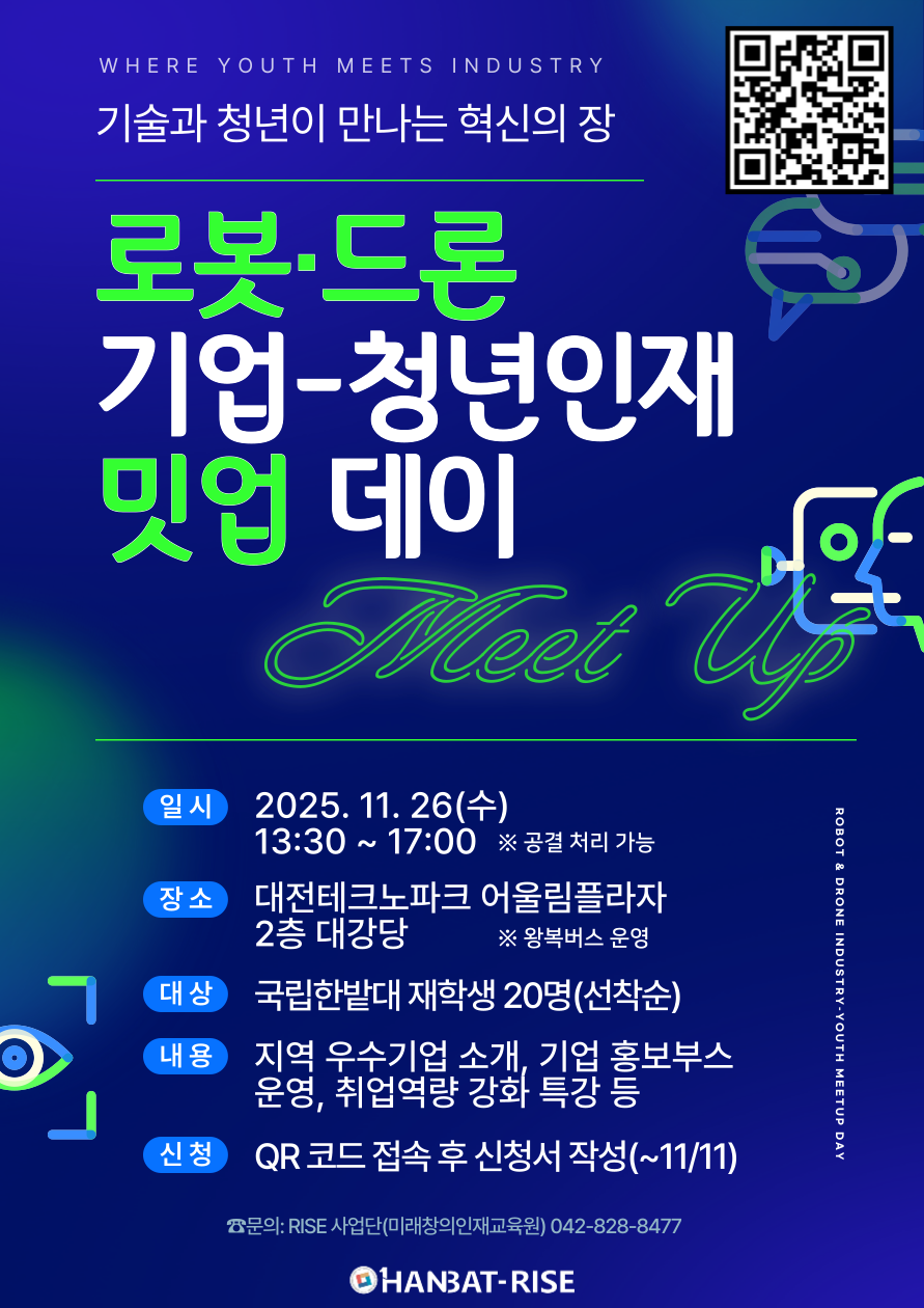 로봇·드론 분야 청년 인재들의 취업역량 강화를 위한 「로봇·드론기업-청년인재 밋업 데이」를 개최합니다.