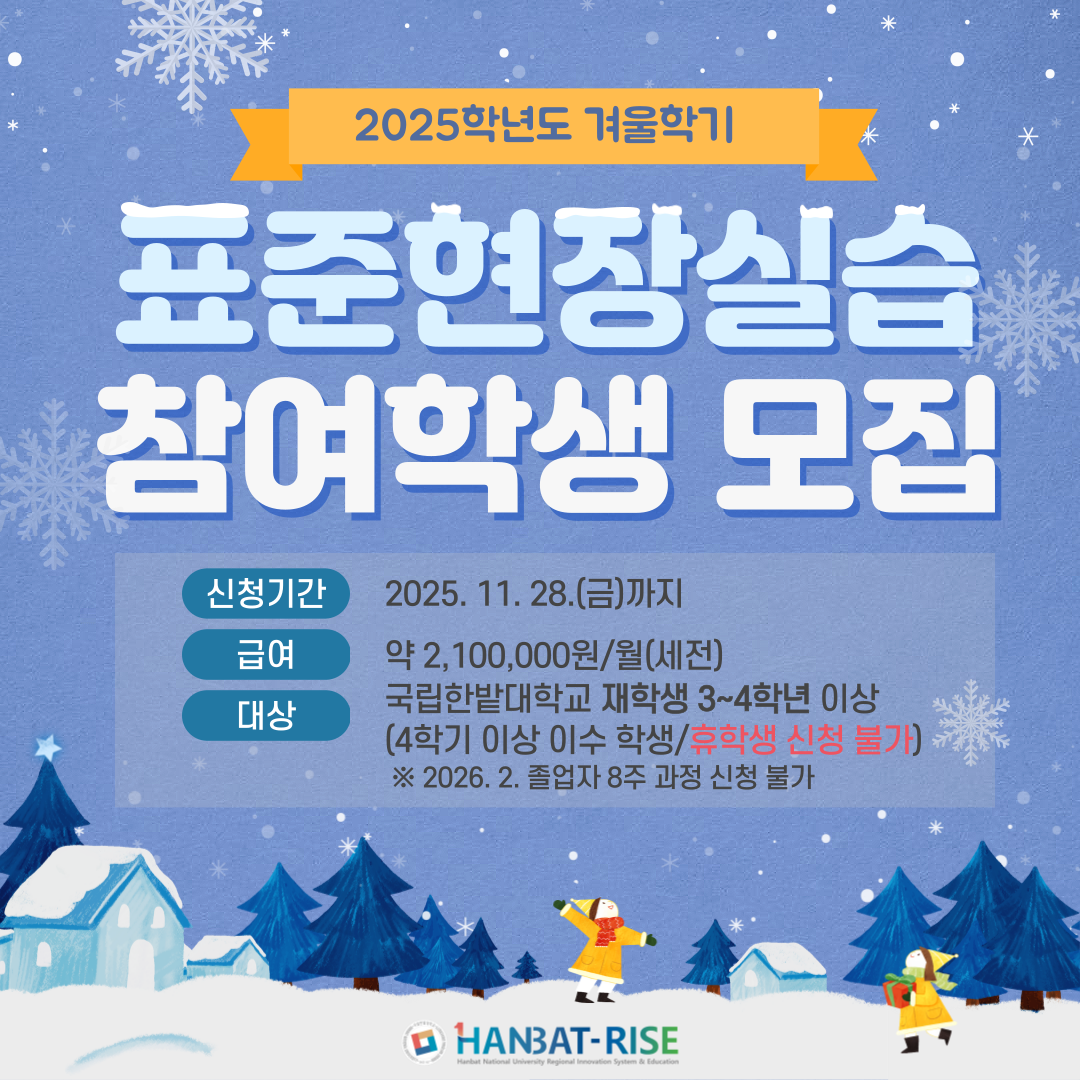 ⛄️겨울학기 표준현장실습 참여 학생 모집 안내⛄️