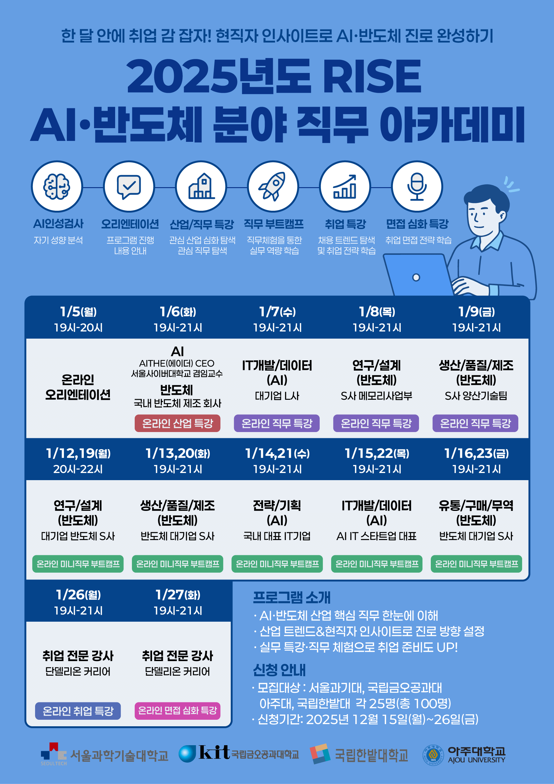 “2025년도 AI·반도체 분야 직무 아카데미”에 참가할 학생을 모집합니다.