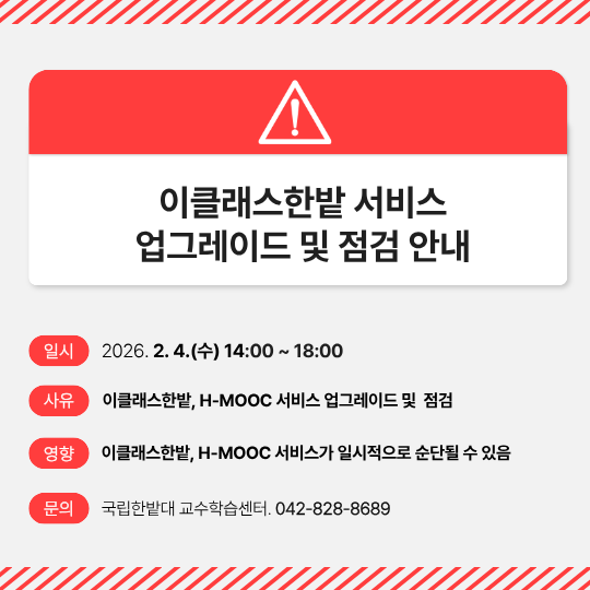 [교수학습센터] 이클래스한밭 서비스 업그레이드 및 점검 안내('26. 2. 4.)