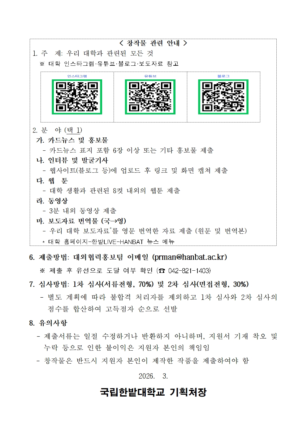 국립한밭대학교 제9기 학생홍보기자단 모집공고