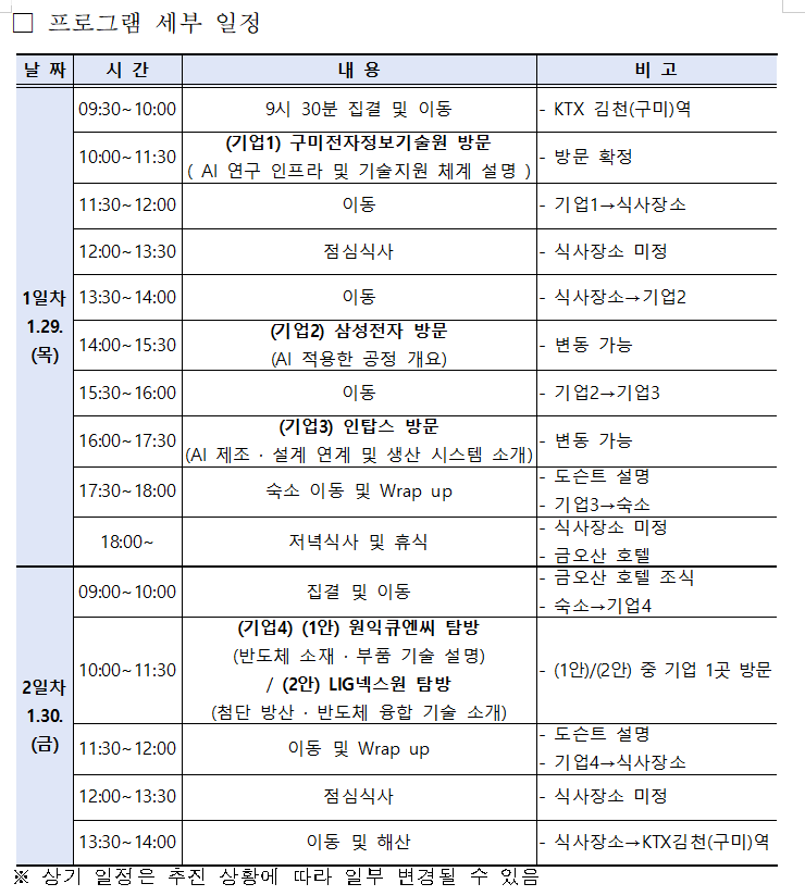 * 선발자는 인솔자와 함께 구미로 이동할 예정(개별 이동 가능)