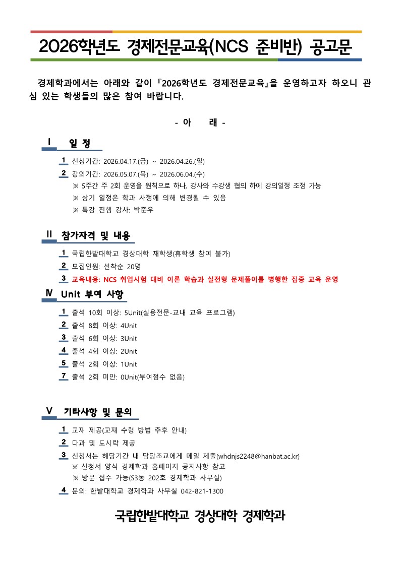2026학년도 경제전문교육 공고문 및 참여신청서