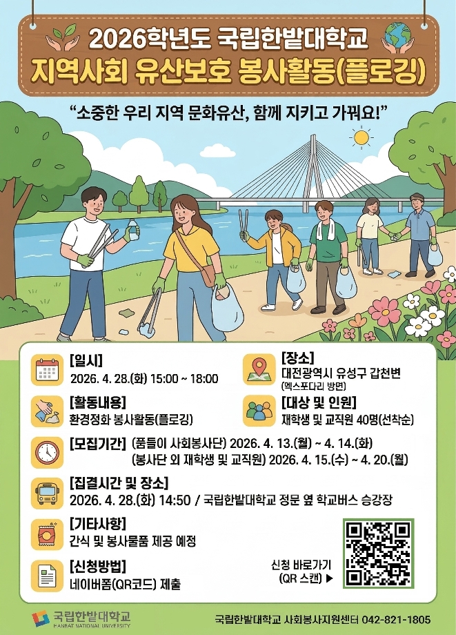 2026학년도 지역사회 유산보호 봉사활동 참여자를 아래와 같이 추진하오니 관심있는 학생의 참여 바랍니다.