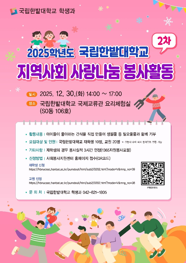 2025학년도 지역사회 사랑나눔 봉사활동(2차) 참여 안내(교원·재학생 대상)