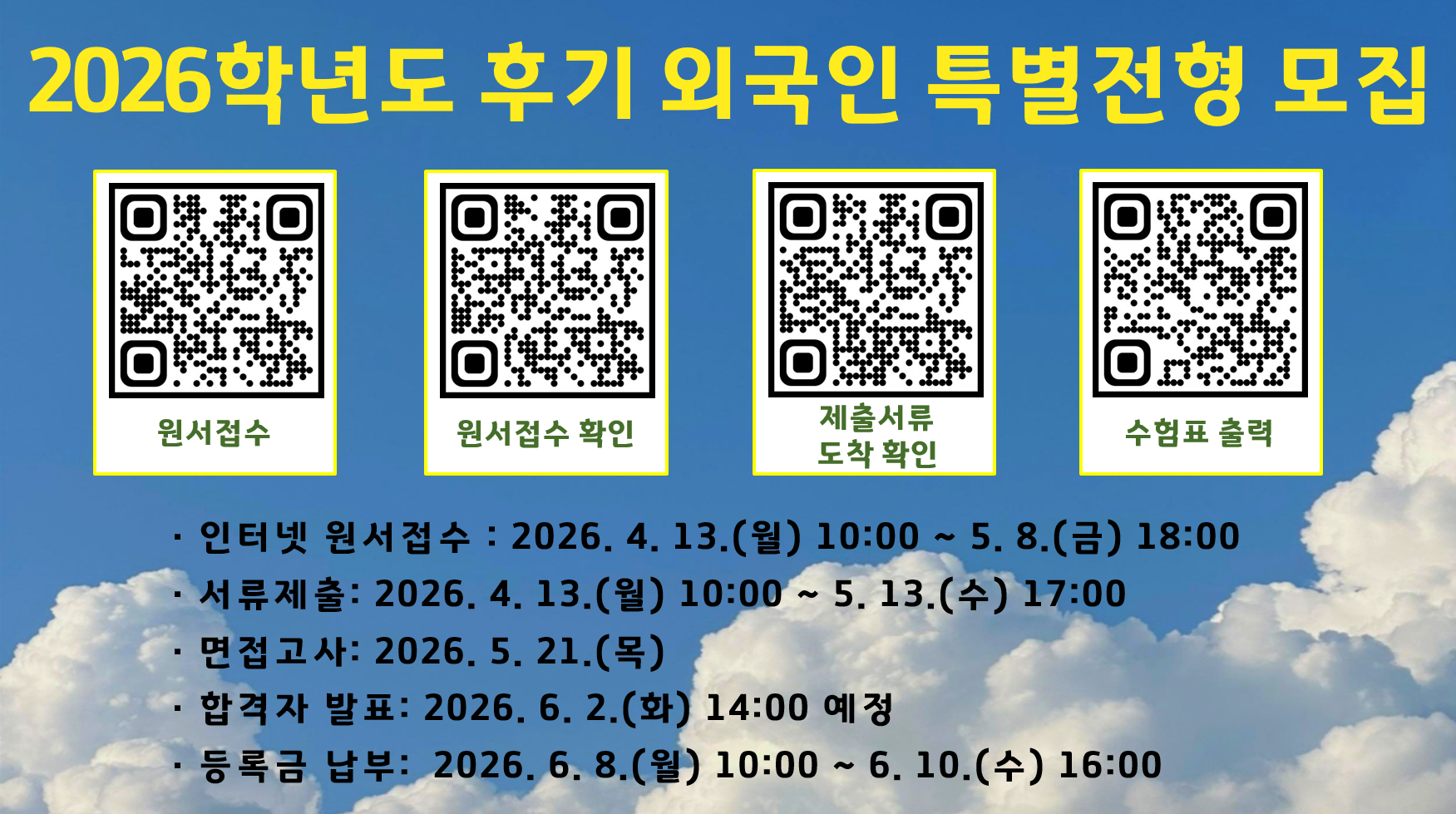 2026학년도 후기 외국인 특별전형 모집요강