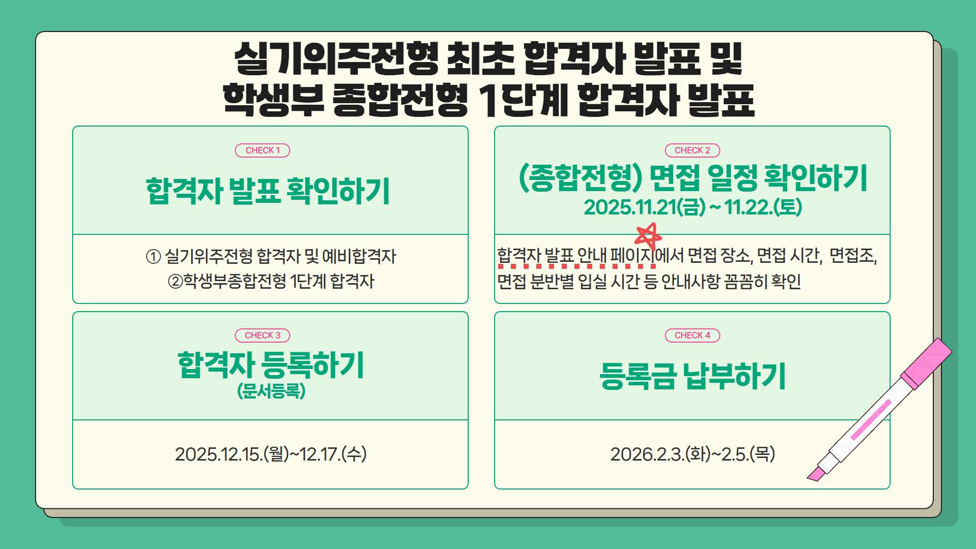 2026학년도 신입생 수시모집 합격자 발표