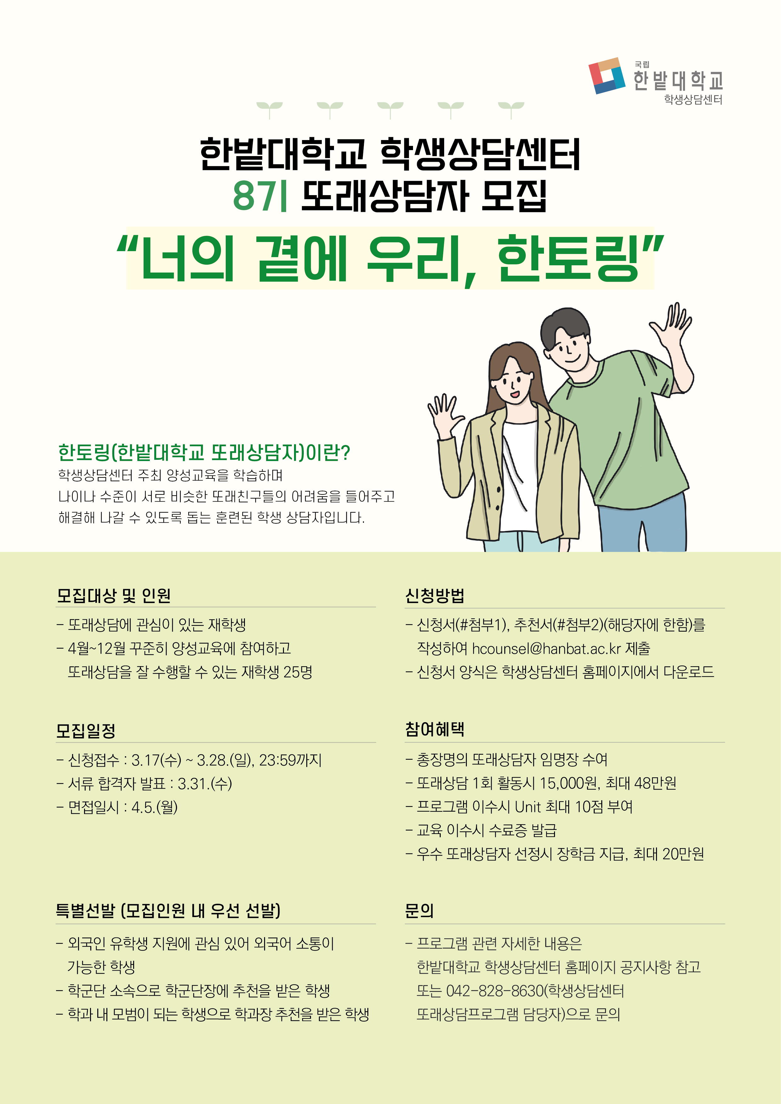 -042-828-8630(학생상담센터 또래상담자 프로그램 담당자)