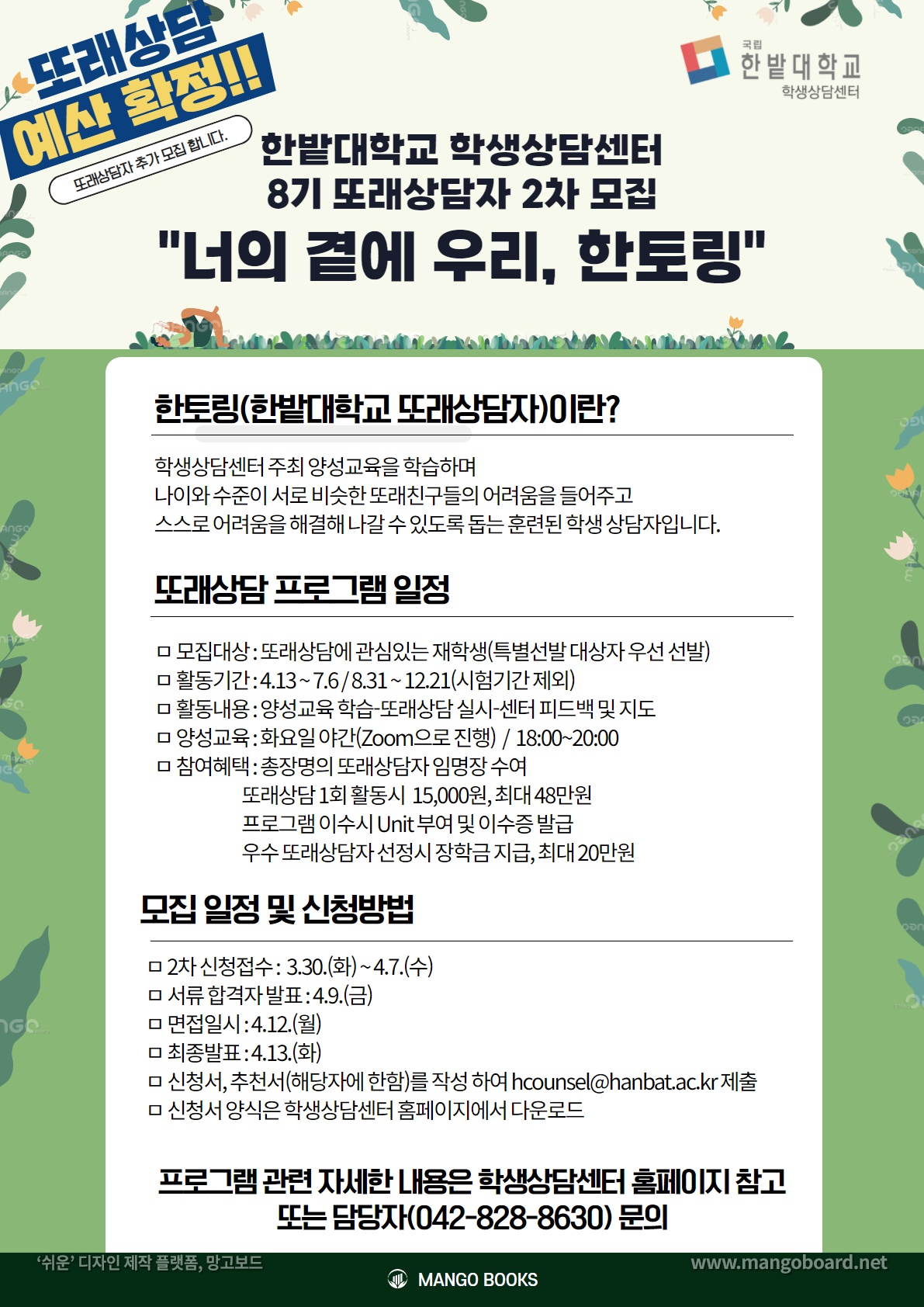 자세한 내용은 대학생활-학생상담센터-공지사항 확인