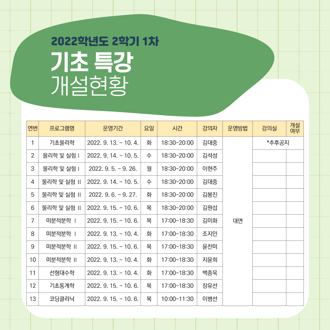 ■ 신청기간 : 2022. 8. 26.(금) ~ 8. 31.(수) *기초특강 수학 과목 제외 모두동일, 특정교과 제외 선착순모집