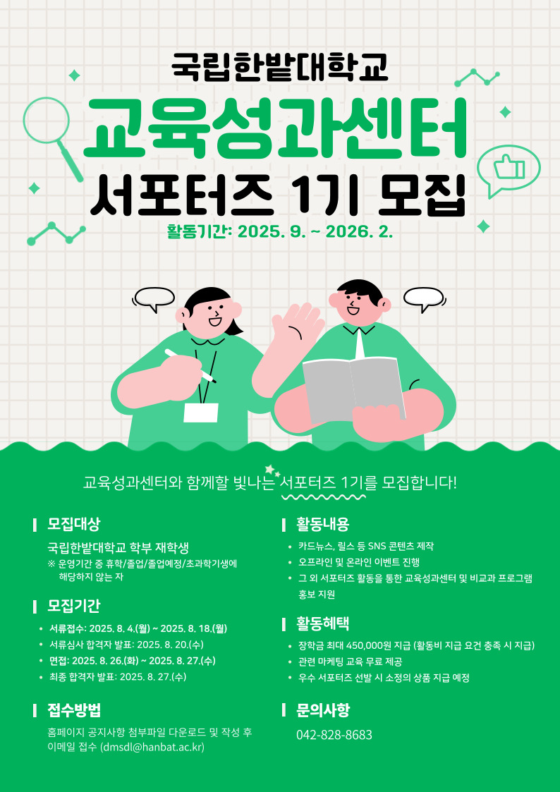 2025학년도 국립한밭대학교 교육성과센터 서포터즈 1기를 모집합니다!
