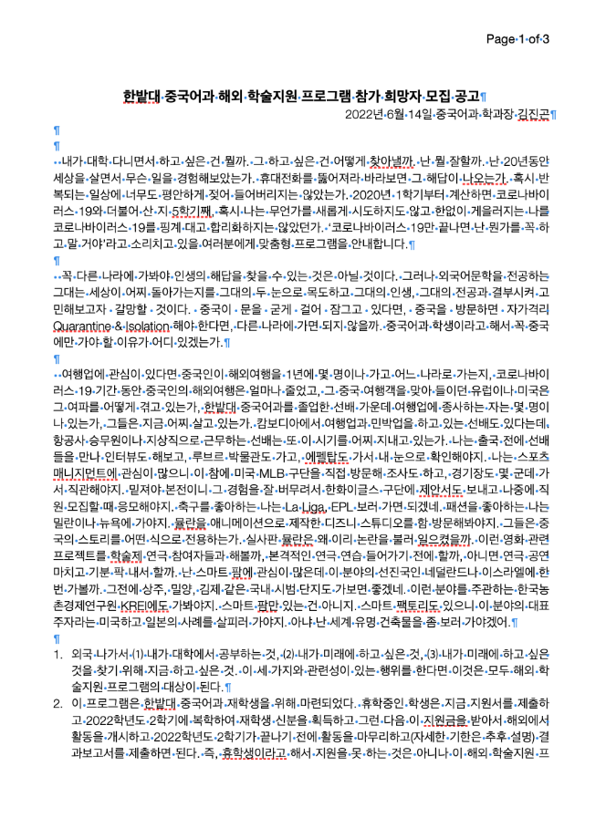 ex) 2022학년도 해외학술지원프로그램 응모_홍길동_20221234