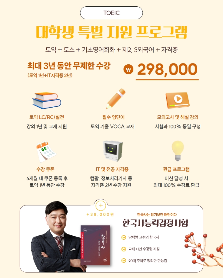 1년에 한번만 진행되는 에듀윌 얼리버드 .ᐟ3년.ᐟ 특별 한정 환급 지원 프로그램을 2학기 개강을 맞이해서 10명의 학우분들이 아래와 같은 혜택을 받으실 수 있게 되었습니다.