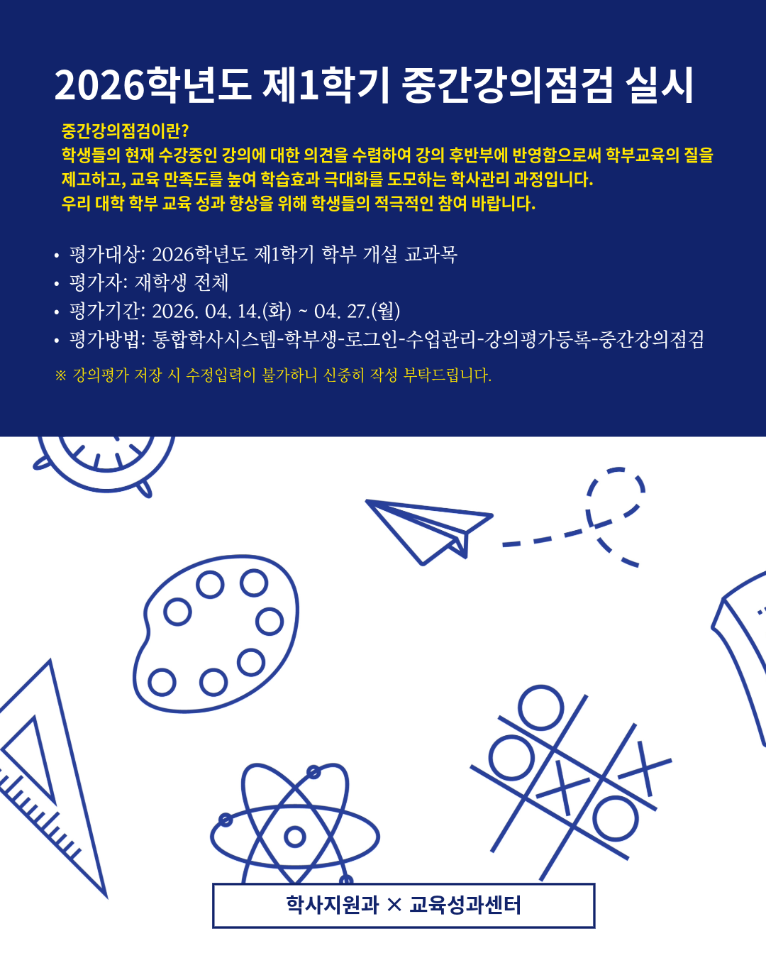 2026학년도 제1학기 중간강의점검 실시 안내