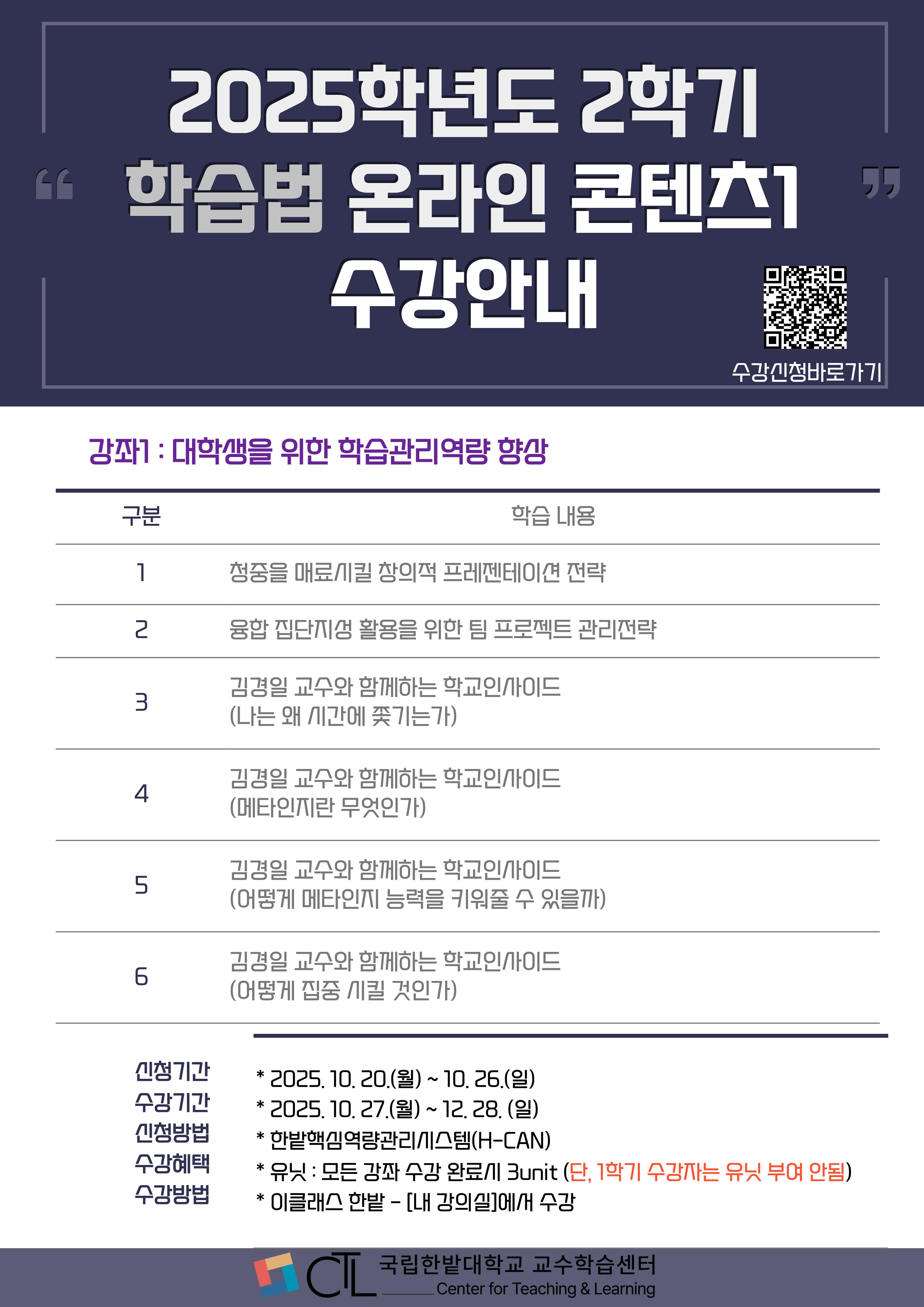 - 수강신청기간: 2025.10.20.(월)~10.26(일)