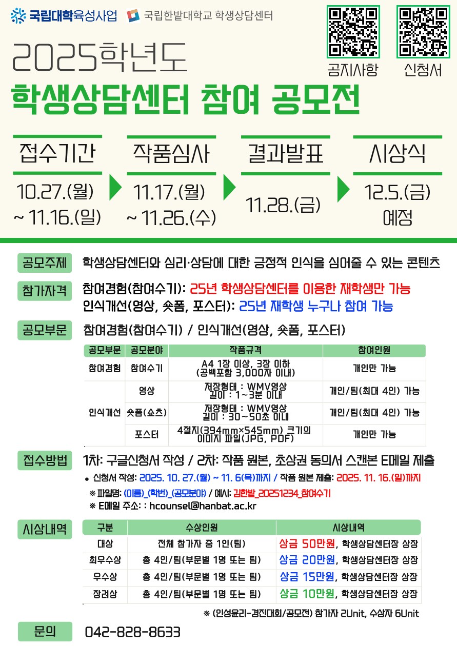 □ 2025학년도 학생상담센터 참여 공모전 운영 안내