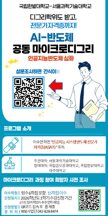 <마이크로디그리 참여 희망자 조사 QR> AI-반도체 공동 마이크로디그리 과정에 대해 궁금하신분 신청해주세요. |