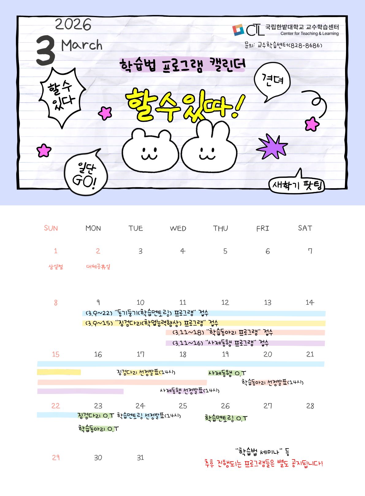 2026학년도 1학기 학습법 프로그램 3월 일정 안내