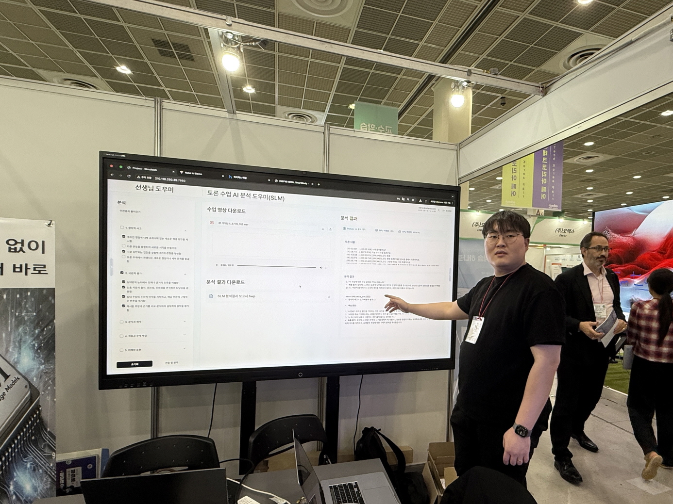 □ 우리 대학은 지난 18일 코엑스에서 개막한 ‘2025 에듀테크 코리아 페어'에서 SW융합연구소(소장 최창범 교수)와 가족기업 ㈜시뮬테크(대표 함규식), 연세대학교 AI혁신연구원 에듀테크센터(센터장 김남주 교수), ㈜노탈(대표 박종진)이 공동 개발한 EdgeAI 기반 교사지원도구를 성공적으로 선보였다고 밝혔다.