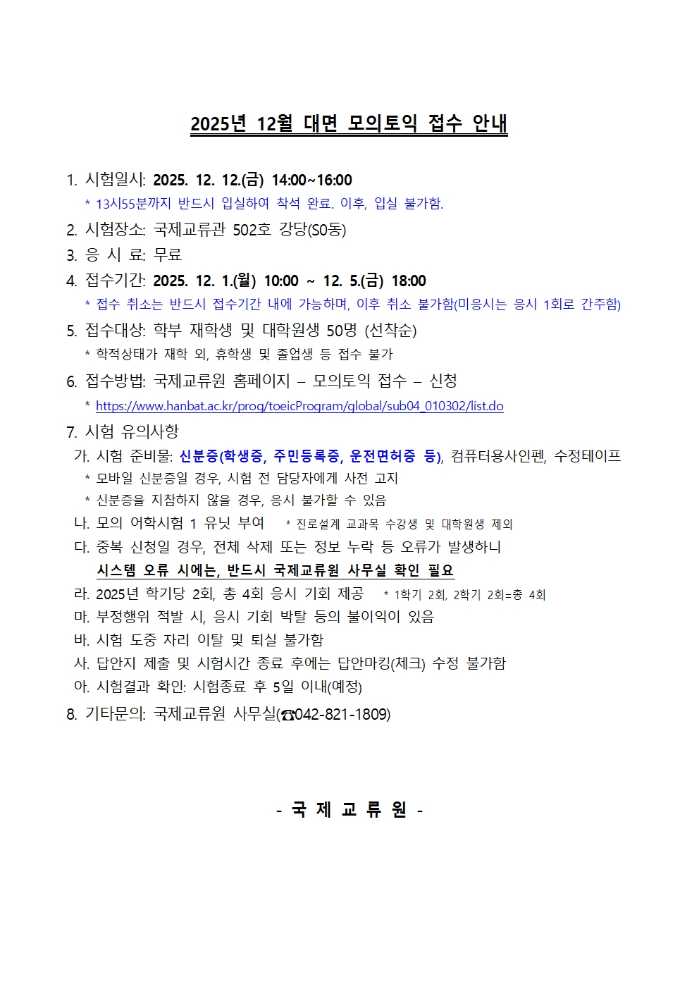[국제교류원] 겨울방학 재학생 영어단과과정 선착순 모집(4유닛+전액/반액장학금 혜택)