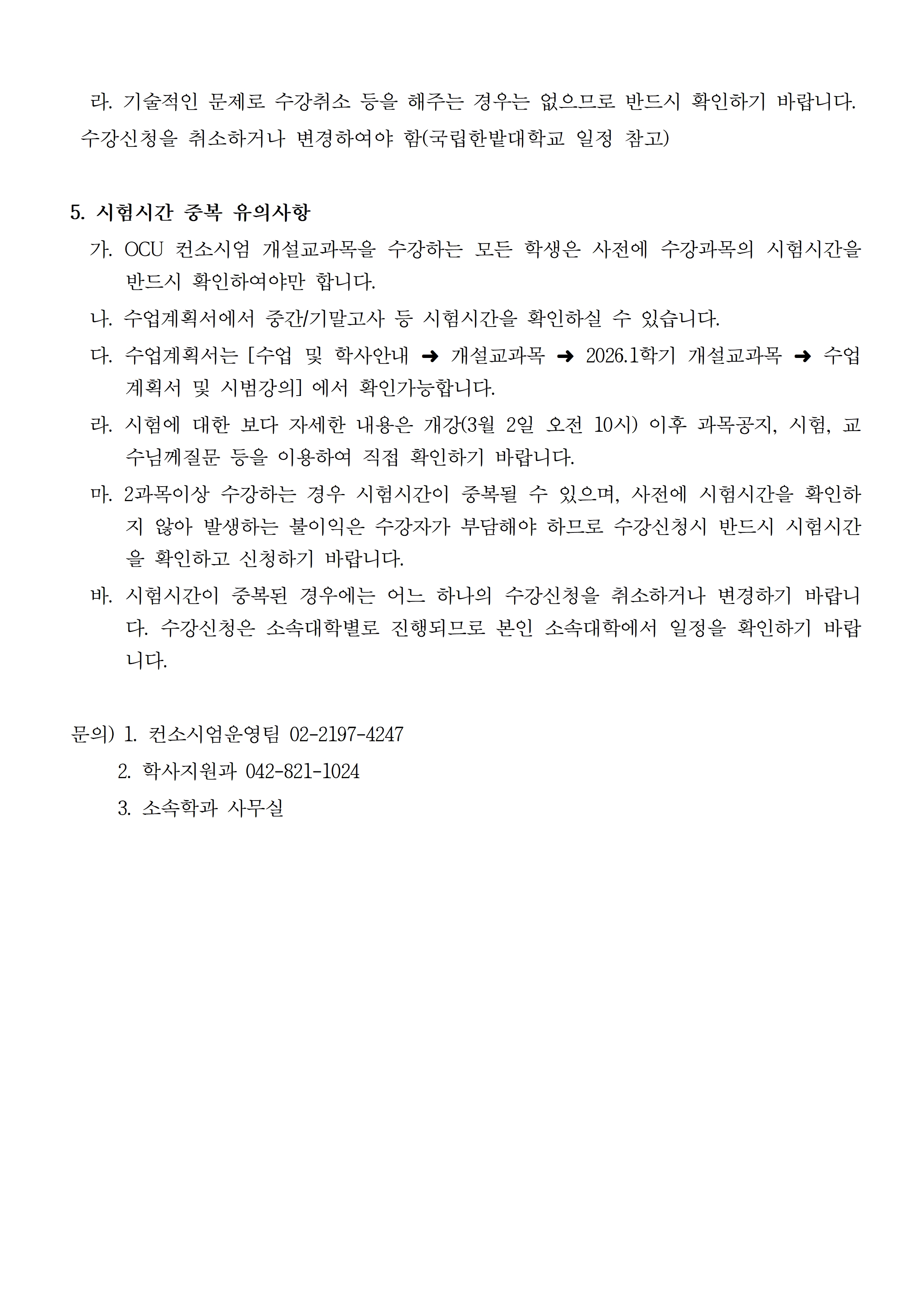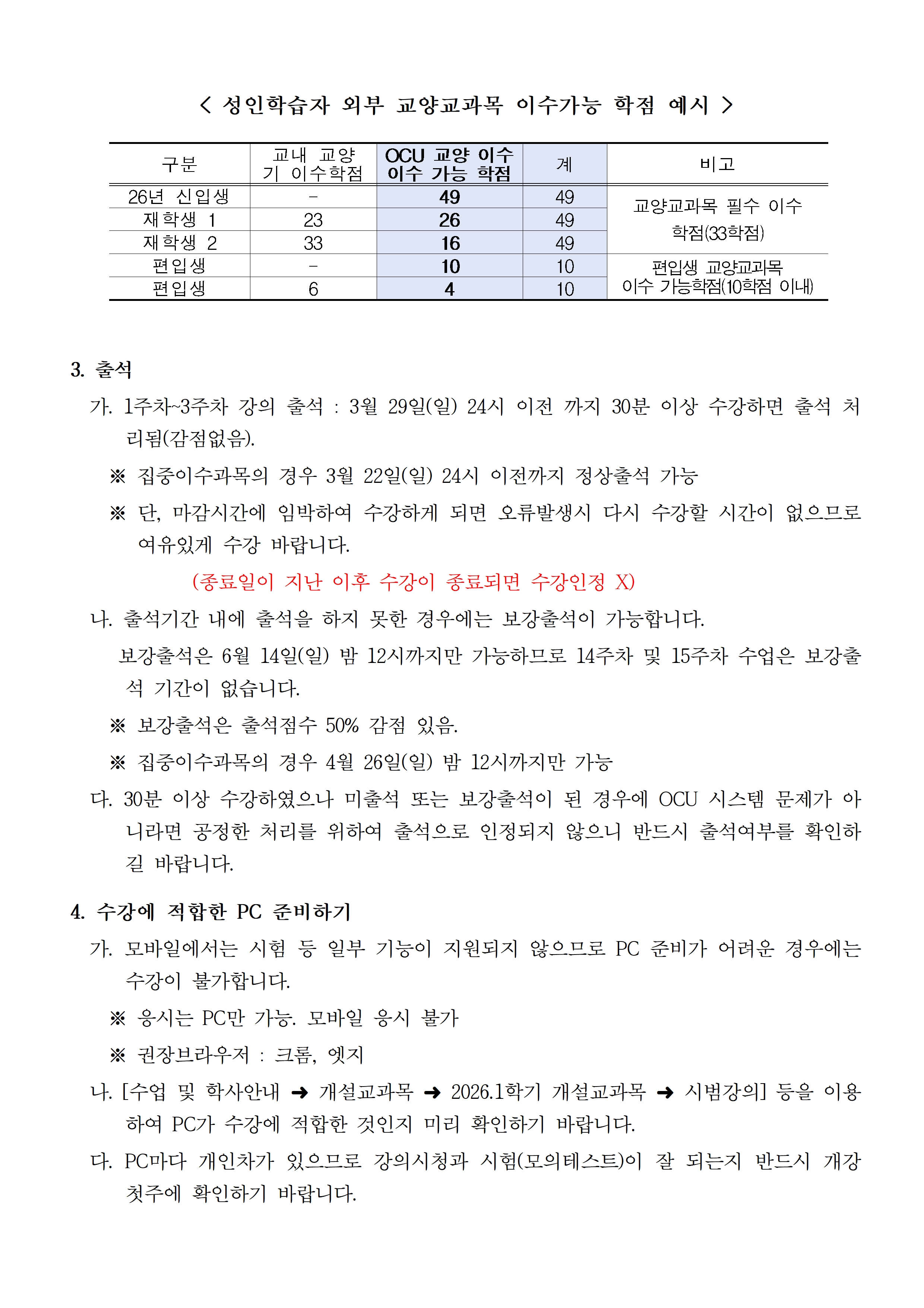 2026학년도 1학기 성인학습자 전담학과 OCU 수강관련 내용을 아래와 같이 안내드립니다.