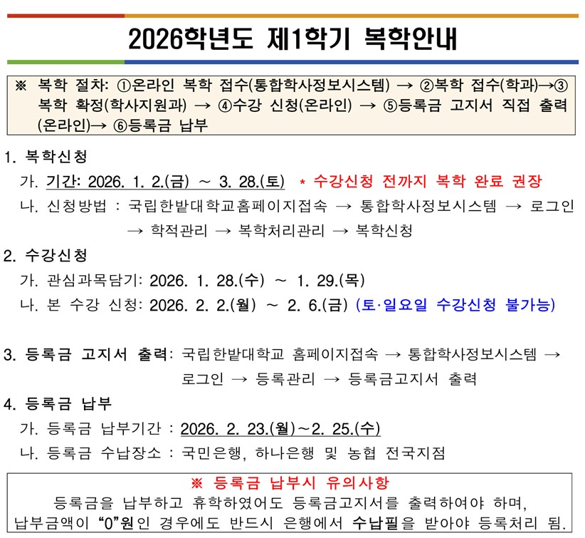2026학년도 제1학기 복학 안내문