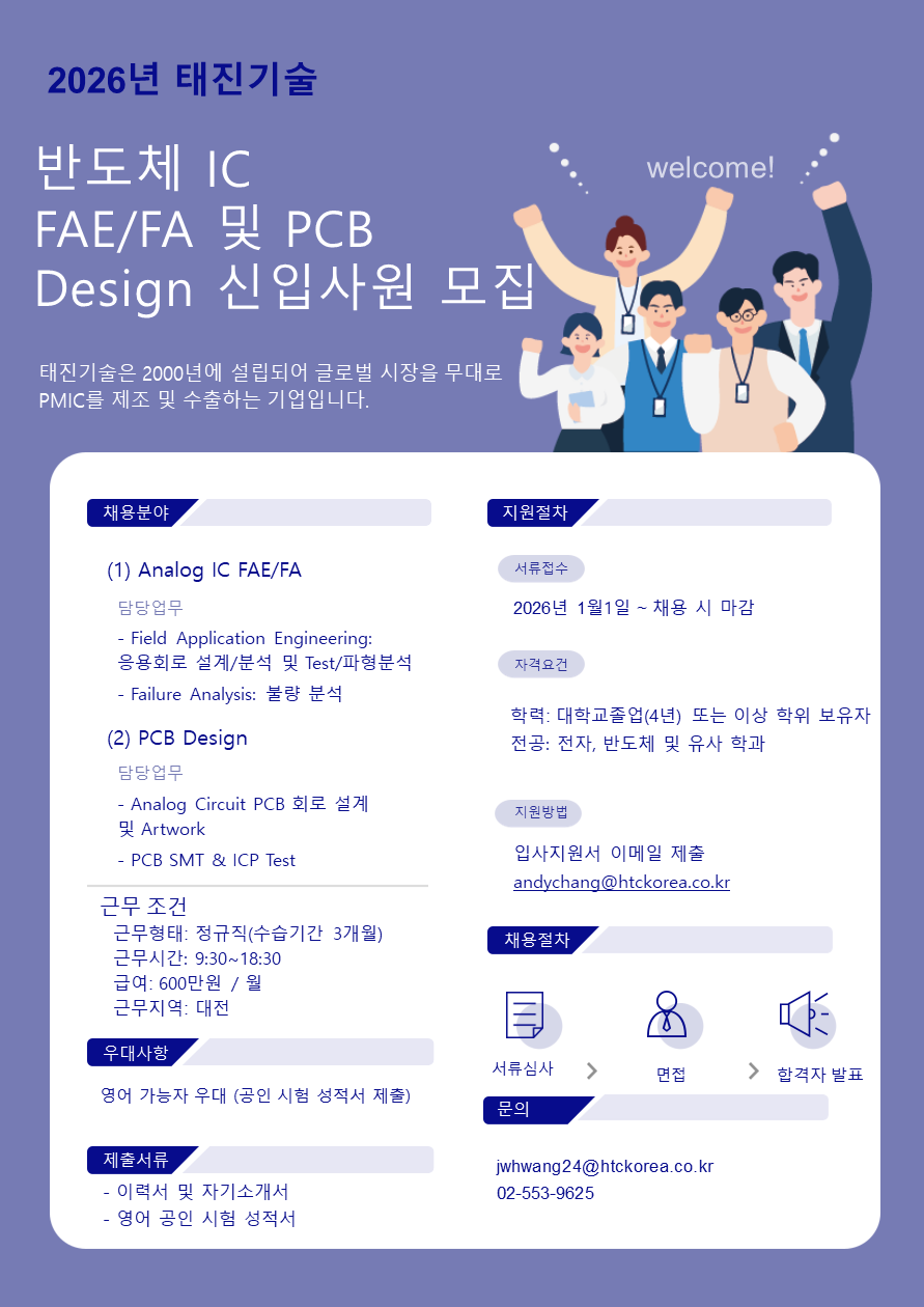 태진기술(반도체 IC FAE/FA 및 PCB Design 신입사원 모집)
